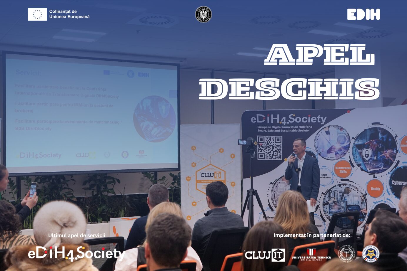 IMM-urile din România sunt invitate să aplice pentru accesarea serviciilor de digitalizare oferite de DIH4Society, finanțate prin Programul Europa Digitală și POCIDIF. Apelul se adresează companiilor interesate de transformare digitală, cu obiective aliniate cel puțin unuia dintre domeniile: securitate cibernetică, automatizare inteligentă sau transformare digitală.