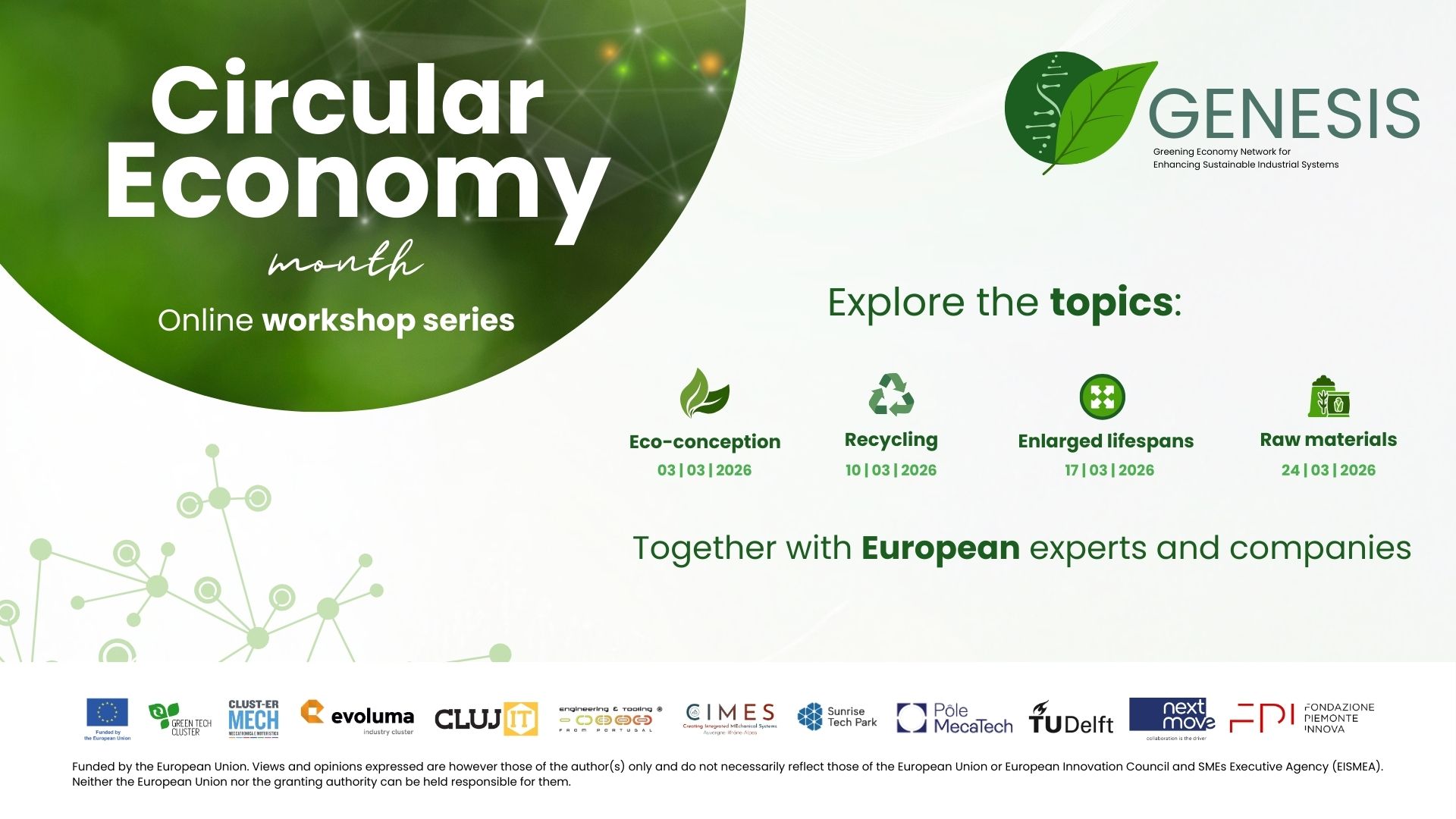 As part of EU Circularity Month, a Europe-wide initiative highlighting innovative approaches to sustainable growth, the GENESIS Project is launching an interactive online webinar series dedicated to accelerating the transition towards a circular economy across European regions.