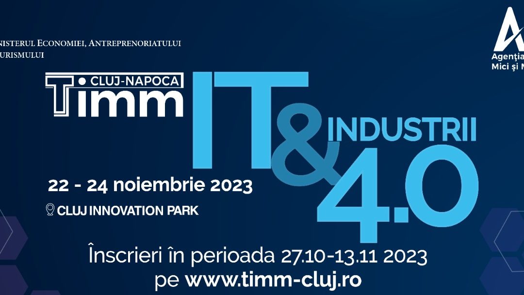 Ministerul Economiei, Antreprenoriatului și Turismului, prin Agenția pentru Întreprinderi Mici și Mijlocii Cluj-Napoca organizează Târgul Întreprinderilor Mici și Mijlocii, ediția 2023 – industria IT & 4.0 – Cluj – Napoca. Evenimentul va avea loc în perioada 22-24 noiembrie 2023, la Cluj Innovation Park.