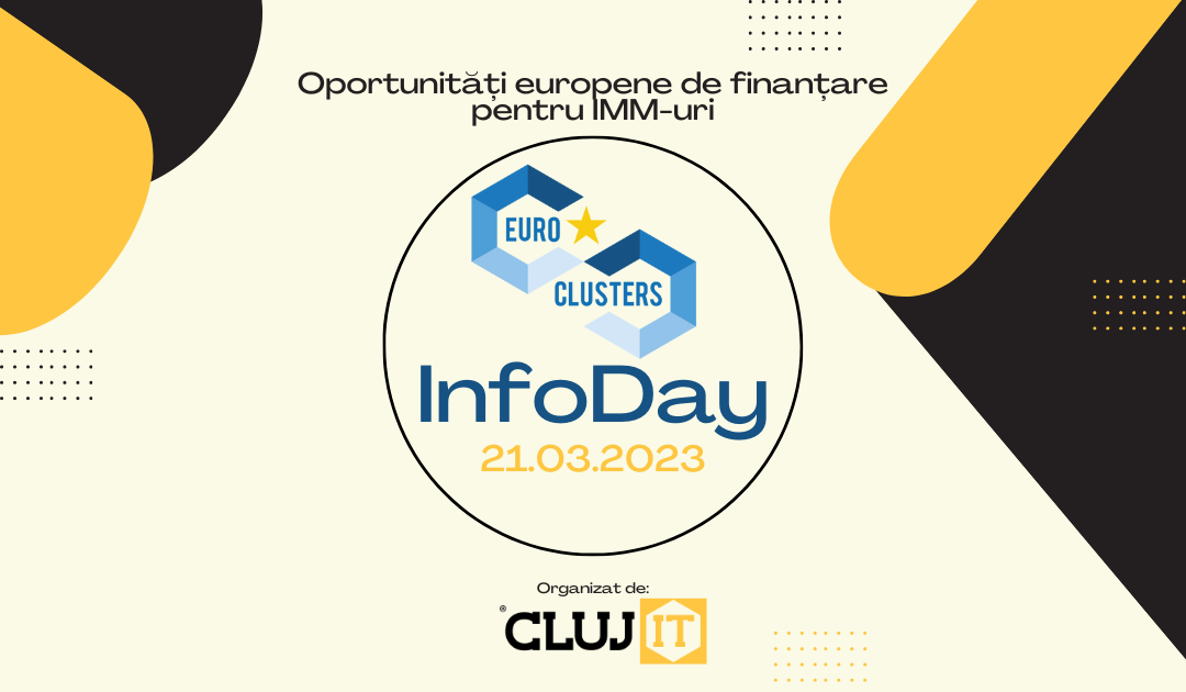 În data de 21 Martie 2023, Cluj IT Cluster a organizat o sesiune de informare pentru membrii săi cu privire la derularea noilor proiecte cu finanțare europeană și a viitoarelor parteneriate strategice în piața unică a Uniunii Europene. În cadrul evenimentului Euroclusters InfoDay, echipa Cluj IT a prezentat proiectele “DESIRE”,  “DREAM”  și “RE-CENTRE” pentru IMM-urile membre care fac parte din ecosistemul de business, proiecte care vizează facilitarea intrării în lanțurile de valoare ale unor sectoare de interes strategic pe plan european cum sunt sănătatea, producția industrială și cel creativ.