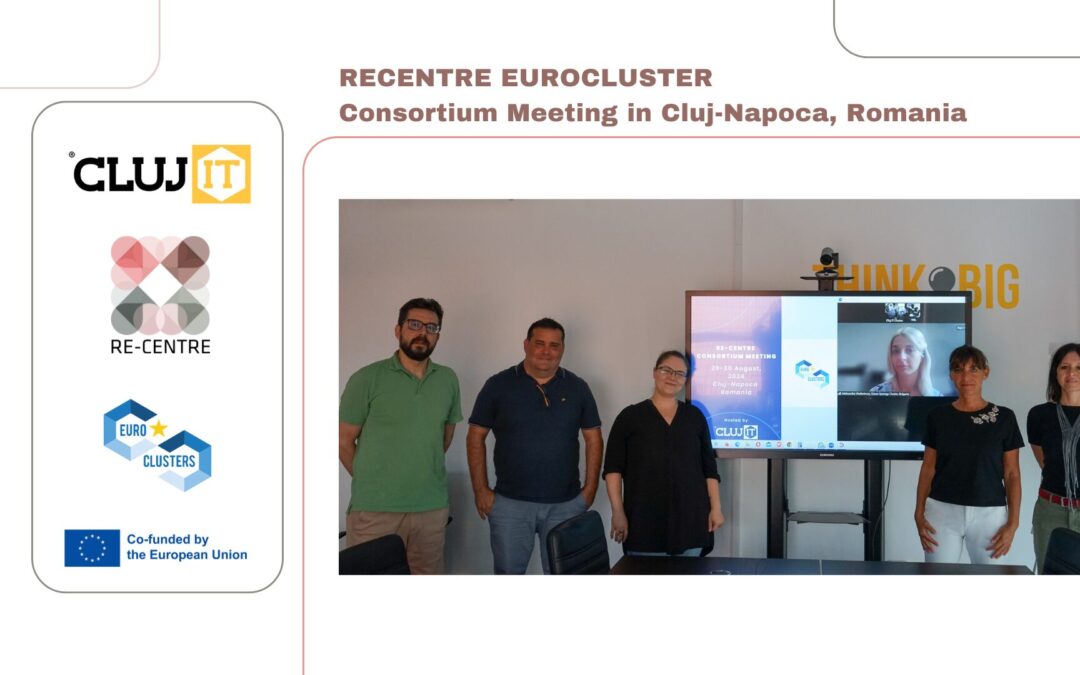 On August 29-30, Cluj-Napoca hosted the latest Consortium Meeting of the ReCentre Eurocluster. Representatives from Distretto Interni e Design (Italy), AMBIT Furnishing Cluster (Spain), and Green Synergy Cluster gathered at the Cluj IT Cluster’s operational office for in-depth discussions on project implementation and the current status of projects selected for direct funding.