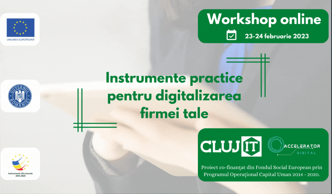 Cluj IT Cluster organizează un nou atelier de lucru aplicat, de această dată pe tema “Instrumente practice pentru digitalizarea firmei tale” adresat companiilor mici și mijlocii românești.
